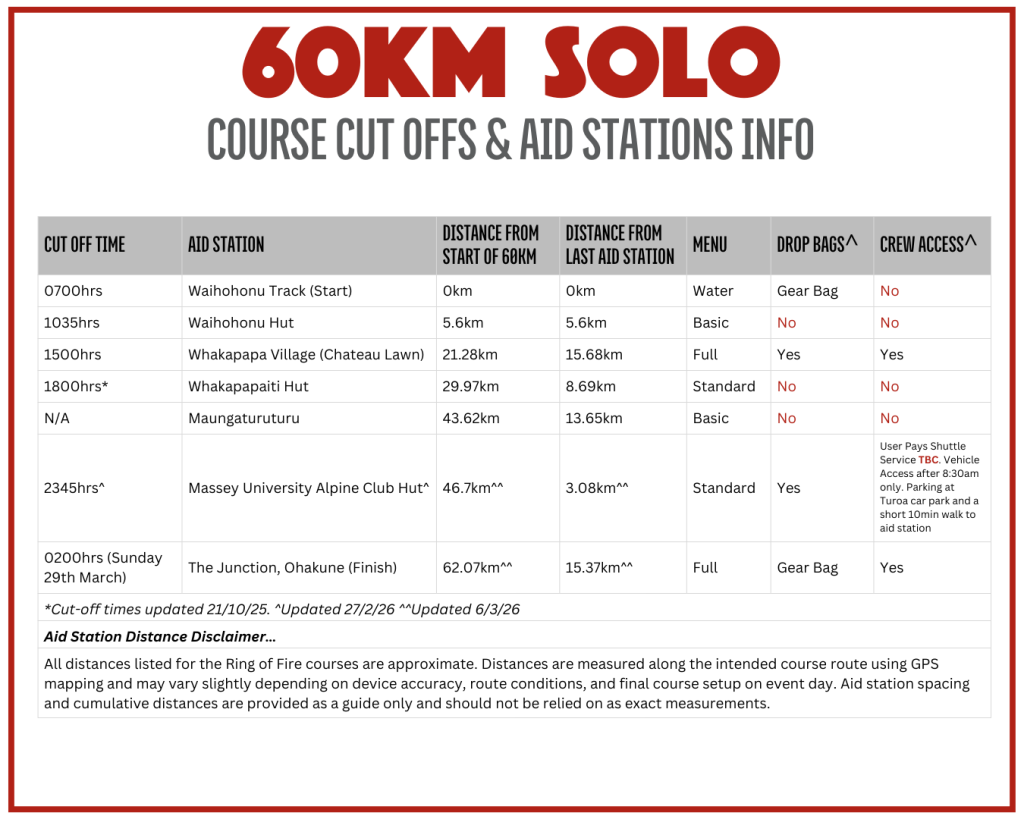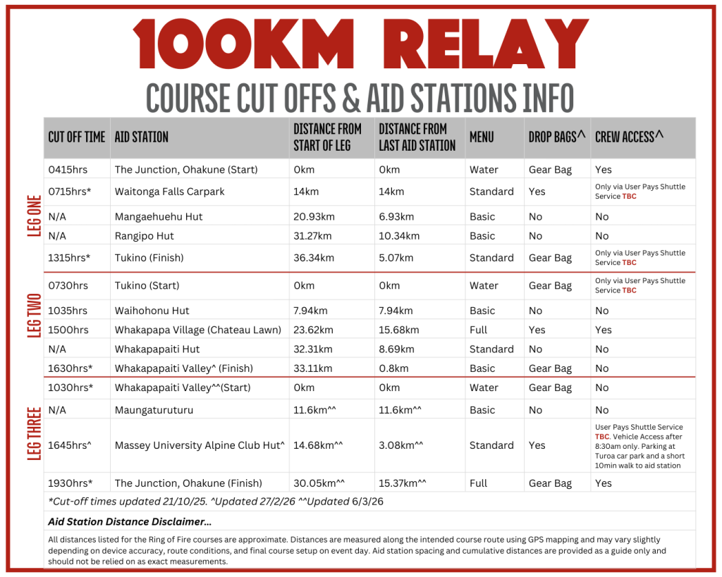 Event: The Ring of Fire ultra-distance trail running events (100km, 60km, Relay) held 27–29 March 2026 in Ohakune and on Mt Ruapehu.
